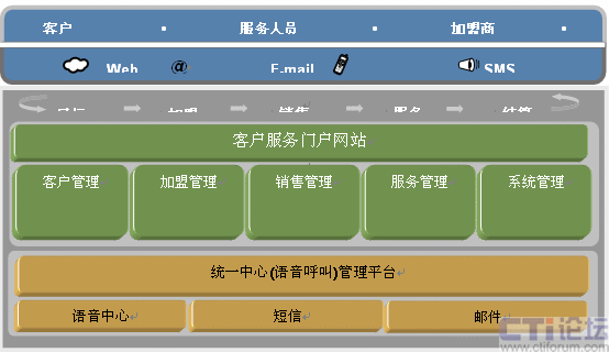 - 在統(tǒng)一通訊服務(wù)平臺(tái)上,構(gòu)建以電話、短信、郵件為服務(wù)方式的客戶管理系統(tǒng)