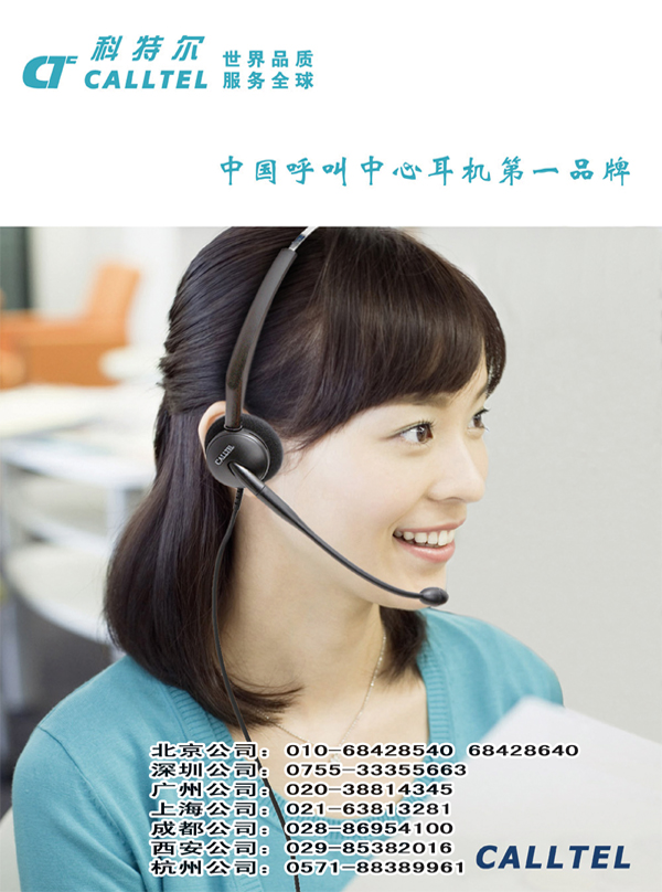 泰訊通訊集團公司(北京、廣州、上海、成都、西安)屬下的CALLTEL科特爾品牌,始創(chuàng)于2000年,生產(chǎn)基地位于廣東省東莞市,目前是中國呼叫中心耳機行業(yè)的第一品牌,在以下領域取得了中國乃至全球領先的市場地位。2005年-2009年,CALLTEL連續(xù)五年保持中國銷量第一的優(yōu)勢,開創(chuàng)了國產(chǎn)耳機占據(jù)市場主導地位的新紀元,在中國呼叫中心耳機發(fā)展史上樹立起一座新的里程碑,CALLTEL從而毫無爭議地成為中國呼叫中心耳機行業(yè)的第一品牌。