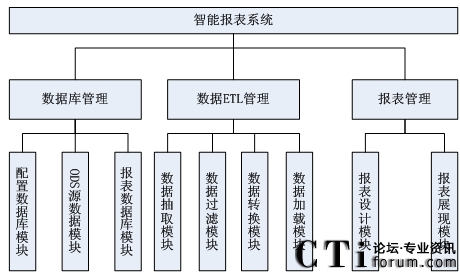從功能模型圖中分析,可定制報(bào)表系統(tǒng)主要包括數(shù)據(jù)庫(kù)模塊、數(shù)據(jù)ETL管理模塊和報(bào)表管理模塊三大模塊。下面來介紹這幾個(gè)功能模塊: