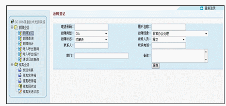 在故障受理方面,該系統(tǒng)同樣出色。它可以建立統(tǒng)一的語音受理號(hào)碼和建立網(wǎng)站,方便用戶通過語音和電腦雙途徑進(jìn)行故障申報(bào)。而出色的無紙收發(fā)傳真功能更是方便使用者通過網(wǎng)絡(luò)用軟件的方式發(fā)送傳真或查詢接收到的傳真文件。