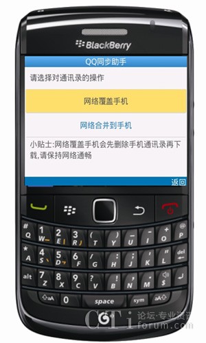圖:通過BlackBerry Bold 9788登陸QQ同步助手