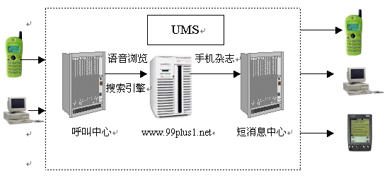 “99+1”統(tǒng)一消息網(wǎng)(以下簡(jiǎn)稱“99+1”)是基于統(tǒng)一消息服務(wù)(UMS)平臺(tái),應(yīng)用呼叫中心服務(wù)方式,針對(duì)移動(dòng)用戶,以“99+1”網(wǎng)站為中心服務(wù)渠道,融合了先進(jìn)的語音合成和語音識(shí)別技術(shù),充分實(shí)現(xiàn)了話音、數(shù)據(jù)、短消息等全方位服務(wù)方式的綜合信息服務(wù)網(wǎng)絡(luò)。