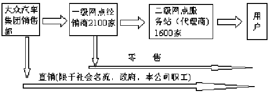 這樣的銷售體制正在逐步向國際市場的規(guī)范方式靠攏。國外的汽車銷售渠道普遍較短,無縱橫交錯(cuò)現(xiàn)象,非常簡潔。(如圖中2-1)
