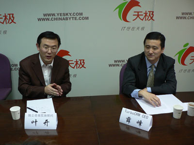 主持人:我們剛剛用節(jié)目2/3時間談了CRM概念,包括給企業(yè)帶來的價值,網(wǎng)友有一些問題,其實很多問題已經(jīng)談過了,包括能為中小企業(yè)帶來什么好處,這剛剛兩位已經(jīng)說非常清楚了,還有一些問題涉及到CRM之前談到的兩塊,一個是CRM能給中國企業(yè)帶來什么樣未來,CRM自己本身會有一個什么樣的未來,接下來就這些問題聊聊,可能會涉及比較大的方向問題,去年2005年的時候是什么樣的狀況,對以后市場預測的問題。薛總先談談Turbo的情況。
