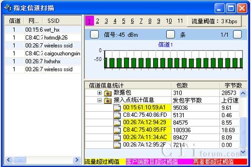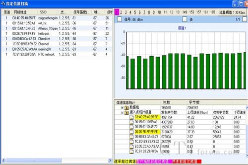 支持設(shè)備被動狀態(tài)下掃描802.11a/b/g/n所有信道,也可選擇信道進行掃描。統(tǒng)計匯總AP、STA、AdHoc等設(shè)備的數(shù)量,統(tǒng)計網(wǎng)絡(luò)中SSID網(wǎng)絡(luò)數(shù)量,能提供信道的信號強度、噪聲、信噪比、干擾參數(shù)指標等信息。