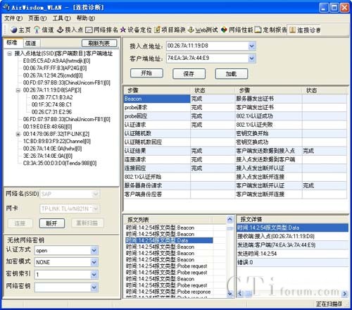 連接診斷功能實時分析顯示接入點同客戶端之間連接步驟的完成狀況,為分析網(wǎng)絡(luò)接入問題提供支持。