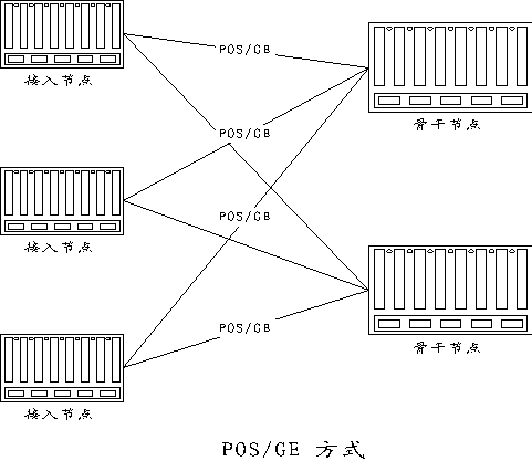 北京電信公眾IP網(wǎng)的接入節(jié)點與骨干節(jié)點之間的連接根據(jù)線路和帶寬的要求采用Packet Over SDH和千兆位以太網(wǎng)技術。