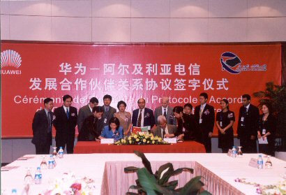 近日,阿爾及利亞電信董事長兼總裁謝第赫(CHETTIH)先生與中國華為董事長孫亞芳女士分別代表雙方公司,簽署了建立全面合作戰(zhàn)略伙伴關系的協(xié)議。雙方表示,將在CDMA、GSM、交換接入、傳輸和數(shù)據(jù)等各領域開展更全面深入的合作,同時強調(diào)了在技術交流、培訓及業(yè)務方面的交流與合作。