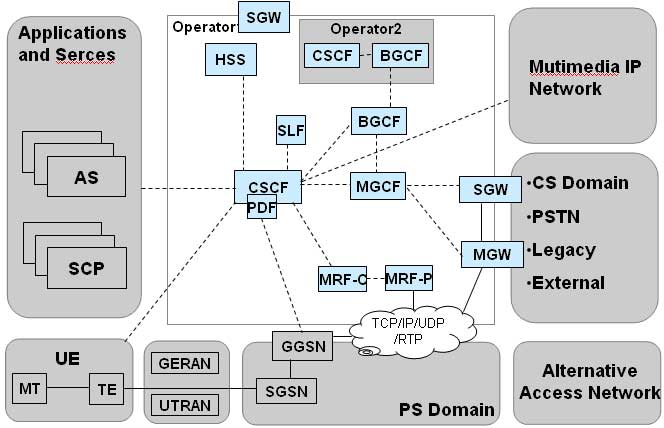 可以通過SGW(信令網(wǎng)關)與CS(電路域)網(wǎng)絡接入,通過MGW(媒體網(wǎng)關)與WLAN、ADSL等接入。