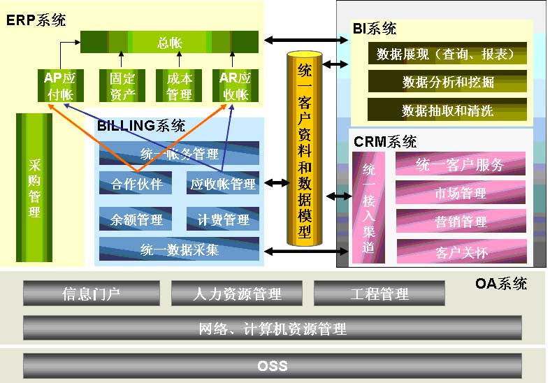 在IMS時代計費將向網(wǎng)絡側傾斜,傳統(tǒng)的BSS將向BOMS(BusinessOperationManagementSystem)演進,BSS的重心將向營銷、CRM和服務等業(yè)務管理及分析轉變。結合NGOSS的發(fā)展,運營支撐系統(tǒng)逐漸演變?yōu)镃RM+BILING的體系架構。