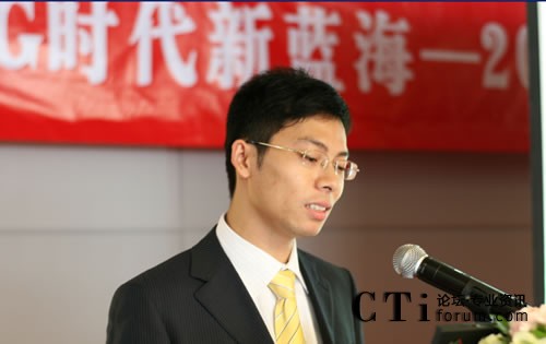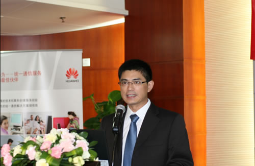 圖:華為軟件UC產(chǎn)品總監(jiān)許國華做“攜手邁入全業(yè)務(wù)融合時(shí)代,助力企業(yè)騰飛”的主題演講