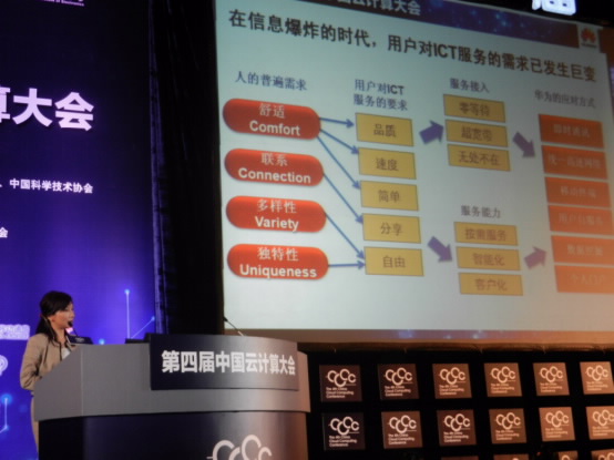 圖片說明:華為IT產(chǎn)品線副總裁朱近之女士在中國(guó)云計(jì)算大會(huì)做主題演講