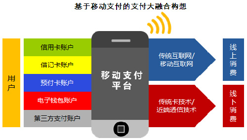 艾瑞咨詢分析認為,移動終端的便攜性、近端通信的成熟、無線通信網(wǎng)絡(luò)的普及將是促進支付大融合的核心因素。多種支付形式的融合將為整個第三方支付產(chǎn)業(yè)的發(fā)展帶來更為廣闊的發(fā)展空間和更加豐富的創(chuàng)新機會。近端通訊技術(shù),為以互聯(lián)網(wǎng)支付為起點的眾多支付企業(yè)以及商業(yè)銀行、預(yù)付卡企業(yè)等線下支付企業(yè)的交互式發(fā)展提供了新的機遇,多賬戶集于一"機"的設(shè)想正在成為現(xiàn)實。整體第三方支付產(chǎn)業(yè)將從線上逐步走向線上、線下協(xié)同發(fā)展,卡支付、互聯(lián)網(wǎng)支付等多種支付形式將在移動支付的基礎(chǔ)上趨于融合。