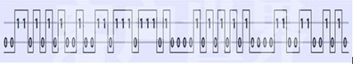 模擬信號的形成比較簡單、直觀,但在傳輸過程中容易受到外界干擾發(fā)生畸變,從而降低通信質(zhì)量;數(shù)字通信是與模擬通信不同的另一種通信方式。數(shù)字信號的傳輸、記錄、處理都采用數(shù)字(“0”和“1”)信號。由于數(shù)字信號抗干擾強、生產(chǎn)的畸變小,也容易消除,因而可以大大提高通信質(zhì)量。使用PCM(Pulse-Code Modulation)調(diào)制后的采樣聲波如下所示: