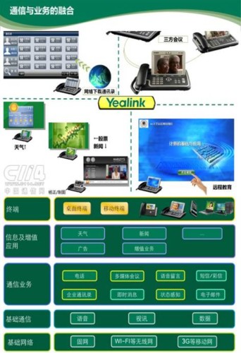億聯(lián)專注于VoIP領(lǐng)域的發(fā)展,見證了整個終端發(fā)展過程:從由傳統(tǒng)的模擬/數(shù)字電話、IP語音電話、IP視頻話機(jī),到多媒體信息終端階段。每前進(jìn)一步,都擁有上一步的所有功能,并再延伸出更核心的應(yīng)用。