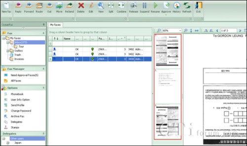 The new version supports to save, edit, forward, route, sign, stamp, split and combine faxes;