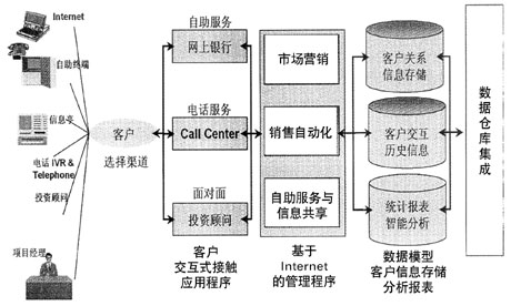 針對商業(yè)銀行面臨的挑戰(zhàn)和真實的需要,Oracle開發(fā)了面向銀行業(yè)的CRM解決方案。該解決方案提供全方位、統(tǒng)一的多渠道協(xié)同的客戶交互服務(wù)入口,包括網(wǎng)上自助服務(wù)、網(wǎng)上他助服務(wù)(通過Call Center在線指導(dǎo)客戶理財或提供投資建議)、電話自助服務(wù)、電話專家服務(wù)、電話智能市場推銷和銷售等。現(xiàn)場服務(wù)則提供客戶經(jīng)理與客戶面對面交流的能力,包括知識共享(金融市場信息、銀行產(chǎn)品信息和各業(yè)務(wù)部門發(fā)布的信息等)、銀行信息的及時獲取、產(chǎn)品和服務(wù)介紹、適時的投資建議、客戶交易行為追蹤、通過智能化工具提供專家服務(wù)、銷售機會管理等,允許重點客戶通過Web、電話或與客戶經(jīng)理/投資顧問面談等方式,提供更靈活的服務(wù)選擇和更及時的服務(wù),以保留大客戶群,增長股東利益。