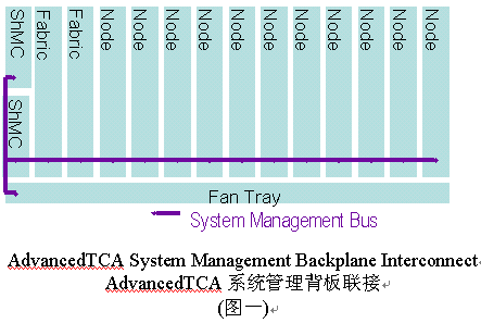 管理系統(tǒng)的信息傳輸和IPMI(智能平臺管理接口)指令集被用作對ATCA框架的管理,包括對電源的管理、電子鑰匙和機架內(nèi)溫度的監(jiān)控。系統(tǒng)管理是通過機框管理控制器(ShMC)執(zhí)行的。機框管理控制器(ShMC)負責(zé)完成對ACTA系統(tǒng)中的現(xiàn)場置換單元(Field