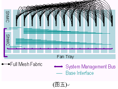 I2C總線使用100Khz時鐘和3.3V信號。ATCA規(guī)范制定要求2個IPMB總線,分別冠以IPMB-A和IPMB-B,兩條總線合一稱之為IPMB-0。IPMB可以以雙總線或雙星型配置方式實現(xiàn)。之所以要求雙IPMB總線是為了保證系統(tǒng)管理子系統(tǒng)的可靠性。IPMB總線被用作聯(lián)接ShMC與ATCA單板和ATCA機架中FRUs的橋梁。雙IPMB總線可同時被使用以加倍傳輸頻寬,但設(shè)計者必須考慮萬一其中一條IPMB總線失靈所帶來的沖擊。典型的ATCA背板上系統(tǒng)管理間的互聯(lián)如下圖所示,在背板上有兩個ShMC槽位,兩個交換槽位,11個節(jié)點槽位和1個風(fēng)扇的連接。值得說明的是管理總線與所有的節(jié)點槽、交換槽通過一對雙備援的ShMC聯(lián)接。
