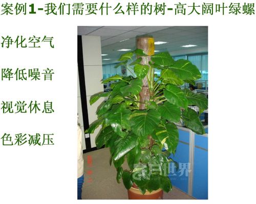 我現(xiàn)在講的是一些案例,這些案例發(fā)現(xiàn)當(dāng)我們用顯微鏡的角度去看,我們今天已經(jīng)可以做到,立刻就可以做到的事情是在話房安放很多棵樹,推薦綠蘿,這是我看到的最優(yōu)秀的一棵綠蘿,為什么說它很優(yōu)秀呢?因?yàn)樗堑蹴數(shù),頂天立地的一棵樹,樹的好處四大功能分別是凈化空氣、降低噪音、視覺休息,用色彩減低自己的壓力。今天咱們的會(huì)議室里面只有這么一個(gè)小的樹,我相信大家一定會(huì)疲勞是很正常的,因?yàn)槲蚁脒^在家里面放這些的樹,我和我老公商量我們要放這棵樹,開始是被他批判的,雖然他現(xiàn)在還沒有完全接受,我還是會(huì)說服他去做這件事情,大家可以試一下,你的話房里面平均10個(gè)話務(wù)員放一棵樹,你會(huì)覺得他們感覺一下就會(huì)出來(lái)。