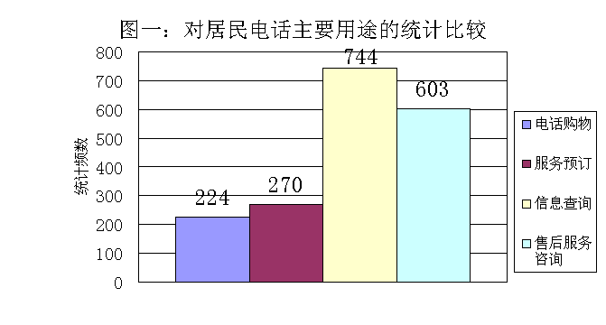 調(diào) 查 結 果 顯 示 , 有 50% 左 右 的 北 京 居 民 利 用 電 話 進 行 信 息 查 詢 ( 例 如 121 查 詢 天 氣 、114 查 詢 電 話 號 碼 ) 和 售 后 服 務 咨 詢 ; 而 利 用 電 話 進 行 服 務 預 訂 和 購 物 尚 未 成 為 電 話 的 主 要 用 途 。