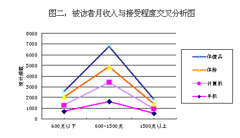 調(diào) 查 表 明 : 收 入 在 600 元 到 1500 元 之 間 的 階 層 對 電 話 購 物 的 接 受 程 度 最 高 ; 而 20 歲 到 30 歲 這 個 年 齡 段 的 人 對 電 話 購 物 的 接 受 程 度 最 高 。