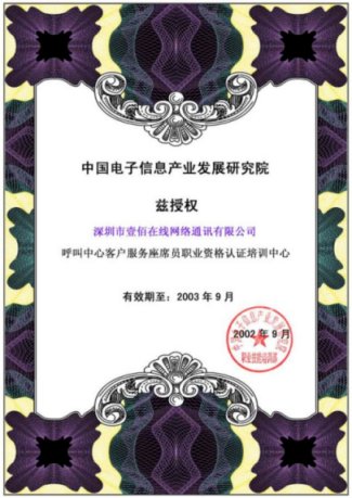 近日,中國(guó)電子信息產(chǎn)業(yè)發(fā)展研究院正式授權(quán)深圳壹佰在線網(wǎng)絡(luò)通訊有限公司為"呼叫中心客戶(hù)服務(wù)座席員職業(yè)資格認(rèn)證培訓(xùn)單位"。