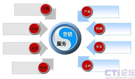 首先看一下服務(wù)營銷的理念,有必要來溫故一下。在傳統(tǒng)的制造業(yè)中,即在工業(yè)經(jīng)濟(jì)的模式下,服務(wù)和營銷是截然分割的,一般大家都認(rèn)為,營銷在前,服務(wù)在后。服務(wù)有幾大特性,比如在購買了產(chǎn)品后才會有相關(guān)的服務(wù),服務(wù)是無形的商品,企業(yè)建立的是售后服務(wù)體系。另外,大家都認(rèn)為服務(wù)沒有辦法進(jìn)行標(biāo)準(zhǔn)化,從這個角度說,大家一看到服務(wù),就會聯(lián)想:客服、成本、務(wù)虛、被動等詞匯。服務(wù)體現(xiàn)的是一種理念,所以大家認(rèn)為比較虛。說到服務(wù)是被動的,實際是與營銷相比,營銷是比較主動的。拿呼叫中心來說,客服人員坐在座位上,等待著客戶打來電話,而不能對電話進(jìn)行預(yù)測,下一個小時會有多少呼入電話產(chǎn)生、投訴的內(nèi)容會有哪些、咨詢業(yè)務(wù)量會有多大,這些誰也不能進(jìn)行準(zhǔn)確預(yù)測,所以說服務(wù)相對比較的被動。再說營銷,大家談營銷時,能想到的詞匯有:產(chǎn)品、利潤、務(wù)實、主動。因為營銷是與產(chǎn)品掛鉤,營銷又可以賺取利潤。另外,之所以說營銷是務(wù)實的,因為營銷是有指標(biāo)的,每個月要進(jìn)行考核。同樣如果從呼叫中心的角度談電銷,它是一種主動式的外呼。