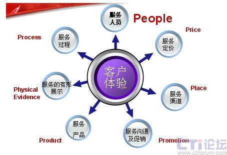 下面這張圖是服務(wù)營銷的7P模型,在這里我認(rèn)為最應(yīng)該關(guān)注的是People——人。這里,我想引用世界經(jīng)理人刊登的一篇文章“影響中國的十大管理理念”上的一段文字:“邁向服務(wù)型經(jīng)濟(jì)實際上就是邁向人才經(jīng)濟(jì)。在制造業(yè)中,價值是由機(jī)器創(chuàng)造的。在服務(wù)業(yè)中,價值則是人創(chuàng)造的!边@也是在服務(wù)業(yè)中,要將“人”進(jìn)行體現(xiàn)。也許你不在乎為你制造產(chǎn)品的工人長的美或丑,但為客戶服務(wù)的人員如果長的很丑,對服務(wù)就會有一定的影響。大家只看產(chǎn)品結(jié)果,不關(guān)注過程,但是服務(wù)卻是與過程緊密的結(jié)合。