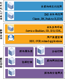 業(yè)務(wù)應用層包括IMS基本的語音、消息和多媒體業(yè)務(wù)外,還包括了擴展的各類面向大眾和企業(yè)市場的社團通信,信息、娛樂等多媒體業(yè)務(wù)和應用,其中包括運營商自己提供的業(yè)務(wù)和由第三方業(yè)務(wù)提供商提供的業(yè)務(wù)。