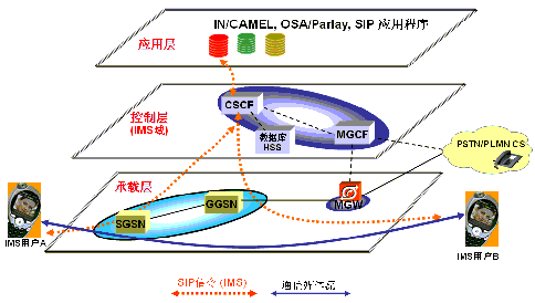 Function)、HSS(Home Subscriber Server)、MGCF(Media Gateway Control Function)等,這些網元通過執(zhí)行不同的角色,如信令控制服務器、數(shù)據(jù)庫、媒體網關服務器等,協(xié)同完成信令層面的處理功能,如SIP會話的建立、釋放。需要指出的是,這一層僅對IMS信令負責,最終的IMS業(yè)務流是不經過這一層的,而是完全通過底層承載層做路由實現(xiàn)端到端通信。