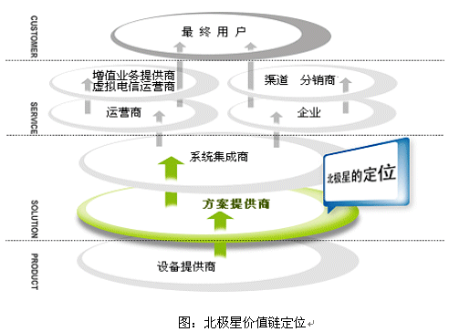 北極星軟件以技術(shù)領(lǐng)先見(jiàn)長(zhǎng)。北極星軟件的iAfx ( Intelligent Application Frameworks ) 是一個(gè)融合語(yǔ)音、圖像、消息、多媒體數(shù)據(jù)的分布式通信應(yīng)用架構(gòu),為業(yè)務(wù)處理和應(yīng)用開(kāi)發(fā)提供了全新的概念和良好的環(huán)境。iAfx?體系既充分考慮了對(duì)現(xiàn)階段運(yùn)營(yíng)商網(wǎng)絡(luò)和基礎(chǔ)構(gòu)架的支持,又兼顧了網(wǎng)絡(luò)和通信技術(shù)向下一代發(fā)展的必然趨勢(shì)。 基于iAfx?架構(gòu),北極星軟件開(kāi)發(fā)的系列VoIP增值業(yè)務(wù)解決方案既能適應(yīng)現(xiàn)有網(wǎng)絡(luò)環(huán)境,又能向下一代網(wǎng)絡(luò)(NGN)平滑過(guò)渡。