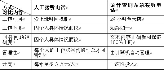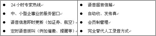 將以往的單位的人工熱線電話轉(zhuǎn)換為計(jì)算機(jī)24小時(shí)自動熱線。有效解決服務(wù)態(tài)度、服務(wù)質(zhì)量等敏感問題。咨詢來電只須象以往撥打熱線電話,計(jì)算機(jī)中的語音卡就會自動接通,完成95%以上的人工服務(wù)任務(wù),用戶就可以通過電話這種最簡單、最易用的方式快速獲取信息。