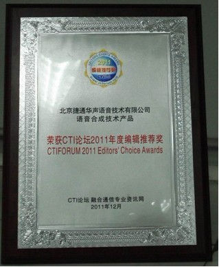 捷通華聲語音合成技術(shù)榮獲CTI論壇年度編輯推薦獎