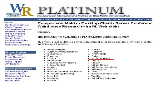 日前,在美國多媒體視頻和通訊領域權威市場調(diào)研機構的 Wainhouse Research 最新發(fā)布了的全球軟件視頻會議廠商的研究報告,北京威速(V2)科技有限公司作為中國領先的軟件視頻會議與解決方案提供商,憑借在軟件視頻會議領域里始終如一的卓越表現(xiàn),以中國唯一廠商的身份入主“全球軟件視頻會議TOP30”榜單。