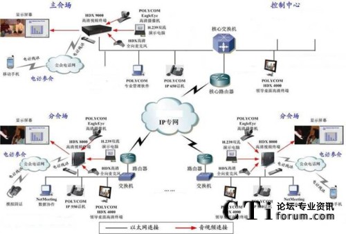 替代原有的H.320視頻會議系統(tǒng),建設成基于IP網(wǎng)絡的H.323交互式視頻會議系統(tǒng)。