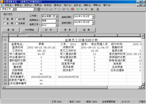● 日志記錄及統(tǒng)計功能:系統(tǒng)能自動將客戶的呼叫記錄、人工座席的服務(wù)記錄、系統(tǒng)的運(yùn)行記錄、系統(tǒng)異常記錄等寫入日志,為統(tǒng)計各坐席的工作量和分析整個呼叫中心的工作效率和服務(wù)資源瓶頸準(zhǔn)備基礎(chǔ)數(shù)據(jù),在必要時可生成報表以備考核。