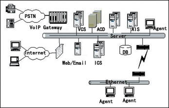 系統(tǒng)內(nèi)部所有媒體呼叫均采用IP數(shù)據(jù)包的格式由核心ACD Server統(tǒng)一處理,完成呼叫控制、路由處理、與呼叫同步的用戶數(shù)據(jù)管理及信息監(jiān)視。對于整個系統(tǒng)而言,雖然媒體接入方式各不相同,但路由策略卻可以完全一致?蛻艨呻S時隨地通過各種媒體與企業(yè)進行緊密聯(lián)系。通過核心控制系統(tǒng),采用一致的路由方式,可以追蹤及管理所有媒體以及一切客服系統(tǒng)人力資源。