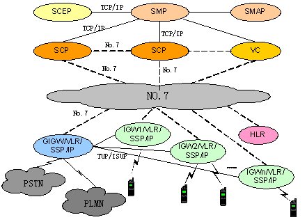 中興PCS智能網(wǎng)可根據(jù)用戶需要采用多種靈活的組網(wǎng)方案,既可全省或多地區(qū)集中建設(shè)一套平臺,充分節(jié)約投資和快速進行業(yè)務(wù)提供,又可按地市單獨建設(shè),充分保證業(yè)務(wù)的靈活性。系統(tǒng)支持與其他PCS網(wǎng)絡(luò)的良好互通,可同時為其它系統(tǒng)提供PCS智能業(yè)務(wù)。中興PCS智能網(wǎng)基于No.7信令與交換網(wǎng)絡(luò)連接,不占用話路資源,采用嵌入式組網(wǎng),智能業(yè)務(wù)采用簽約信息觸發(fā),SSP(Service Switch Point)和SCP(Service Control Point)之間采用No.7信令進行通信,在這種組網(wǎng)方式下,不存在話路迂回,有效節(jié)約運營商寶貴的網(wǎng)絡(luò)資源,并可以根據(jù)簽約信息靈活開展多種智能業(yè)務(wù),智能網(wǎng)信令也能很好地支持用戶的移動性,給用戶提供更靈活、方便和個性化的服務(wù)。