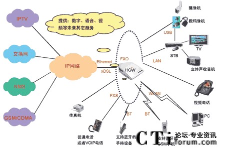 家庭網(wǎng)絡(luò)的外圍設(shè)備—STB、PC、可視電話(huà)、Bluetooth手機(jī)等;