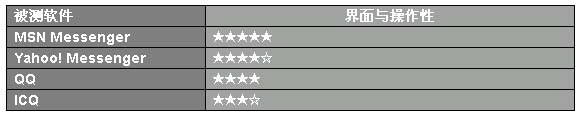 MSN Messenger和Yahoo! Messenger的操作都很簡單,只是MSN Messenger在同樣的畫質下延遲要小于Yahoo! Messenger,表現(xiàn)出更優(yōu)的實用性。QQ操作也不算太復雜,只是會員和非會員在功能上有一些限制,不過在同畫質的延遲方面做的算是出色,ICQ操作沒有測試成功。