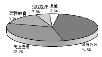 我國的遠程教育和遠程醫(yī)療尚處于發(fā)展初期,所占份額分別是8.7%和7.9%。這反映視頻會議系統(tǒng)在遠程教育、遠程醫(yī)療等方面建設(shè)力度還不夠大。不過,據(jù)研究表明,這兩個領(lǐng)域的應用近年來呈現(xiàn)出蓬勃發(fā)展的勢頭。