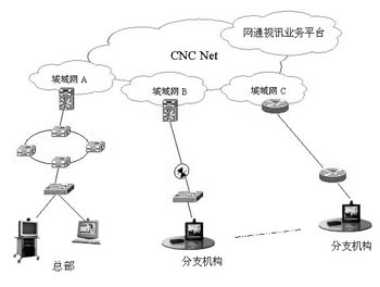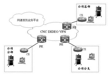 網(wǎng)通視訊業(yè)務(wù)作為應(yīng)用層的服務(wù),可以通過客戶的分支機(jī)構(gòu)之間由MPLS VPN組成的專網(wǎng)來(lái)承載視頻通信,或者通過接入網(wǎng)通的視頻VPN來(lái)使用視頻通信服務(wù)。