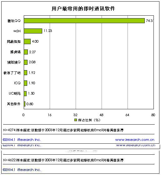 新迎來的2004年對于中國的互聯(lián)網(wǎng)是充滿無限憧憬的一年,互聯(lián)網(wǎng)用戶打到了近8000萬,在繼短信、網(wǎng)絡(luò)廣告、網(wǎng)絡(luò)游戲成為中國網(wǎng)絡(luò)企業(yè)發(fā)家致富的法寶之后,即時通訊又將是一塊無限誘惑的領(lǐng)地,成為門戶網(wǎng)站、電信運(yùn)營商展開廝殺的新大陸。