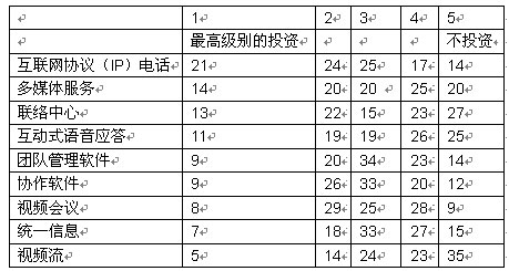 許多早期接受融合網(wǎng)絡(luò)的主要動因是為了減少語音成本。語音電話(VOIP)技術(shù)使融合網(wǎng)絡(luò)環(huán)境中的這一切都成為可能。語音電話實現(xiàn)了互聯(lián)網(wǎng)上的呼叫路由,繞過公共交換電話網(wǎng)絡(luò)(PSTN)進行傳輸,從而避免了昂貴的費用。我們的調(diào)查顯示,大部分公司將會在中短期內(nèi)把投資重點集中在融合網(wǎng)絡(luò)應(yīng)用上。