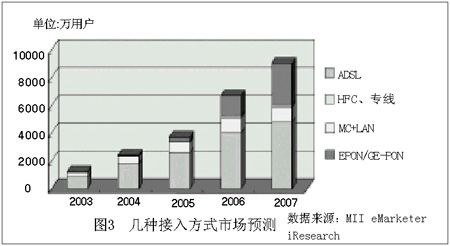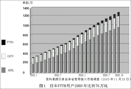 2004年初,中國ADSL用戶已增至1915萬戶,年內(nèi)將突破2000萬大關(guān)。正當(dāng)ADSL大行其道時,運營商已經(jīng)入手,開始試用部分FTTH產(chǎn)品。