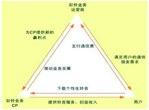 如今,韓國(guó)的彩鈴業(yè)務(wù)已遍地開花,超過50%的手機(jī)用戶在使用彩鈴服務(wù),運(yùn)營(yíng)商因此每月能獲得1500萬(wàn)美元的收益。小彩鈴喚來了大市場(chǎng)。個(gè)人用戶無(wú)需購(gòu)買昂貴的終端就可通過彩鈴業(yè)務(wù)向外界傳遞個(gè)性和情感。商業(yè)用戶將回鈴音設(shè)置成廣告/宣傳語(yǔ),使客戶在與企業(yè)員工交流的同時(shí)接收企業(yè)的相關(guān)信息,例如企業(yè)文化、產(chǎn)品、銷售信息等,直接或間接地增加了企業(yè)的市場(chǎng)機(jī)會(huì)。彩鈴業(yè)務(wù)為運(yùn)營(yíng)商帶來了直接的經(jīng)濟(jì)收益,也帶來了特征用戶群,在語(yǔ)音增值業(yè)務(wù)中實(shí)現(xiàn)了產(chǎn)業(yè)鏈合作。同時(shí),運(yùn)營(yíng)商通過對(duì)特征用戶群的研究分析發(fā)現(xiàn)了未來商機(jī),并通過在語(yǔ)音增值業(yè)務(wù)產(chǎn)業(yè)鏈中引入ICP/ISP達(dá)到了資源的有效利用。
