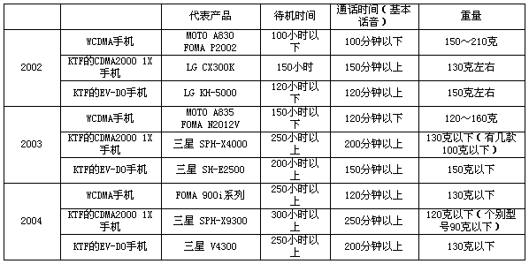 表3 KTF的CDMA2000 1X與EV-DO手機(jī)基本性能對(duì)比