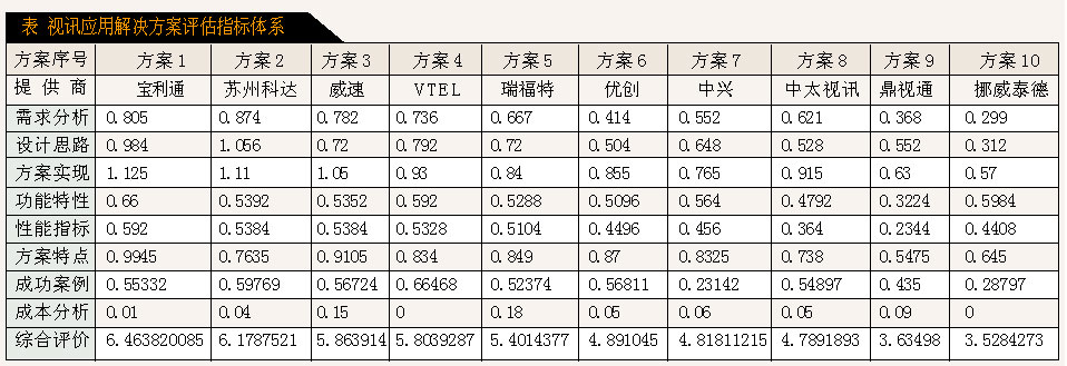 表 視訊應用解決方案評估指標體系