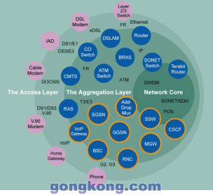 ATCA正在被廣泛應(yīng)用于無(wú)線網(wǎng),見圖2中橙色園環(huán)部分,這是由市場(chǎng)對(duì)成本效益,快速部署方案的需求驅(qū)動(dòng)的。服務(wù)提供商和TEM均認(rèn)識(shí)到:用戶愿意為3G網(wǎng)絡(luò)的先進(jìn)功能所付出的只能是少量的附加費(fèi),因此從2G/2.5G向3G轉(zhuǎn)換必須以盡可能低的成本和盡可能靈活的方案來(lái)實(shí)施,許多TEM已經(jīng)將ATCA看成滿足快速發(fā)展的無(wú)線市場(chǎng)需求的唯一技術(shù)。若基于雙星千兆以太網(wǎng)交換互連,ATCA的性能已經(jīng)很好的滿足無(wú)線網(wǎng)要求,因?yàn)檫@些網(wǎng)絡(luò)實(shí)質(zhì)上是低帶寬而高運(yùn)算密度的網(wǎng)絡(luò),對(duì)于實(shí)時(shí)敏感的語(yǔ)音應(yīng)用而言,千兆以太網(wǎng)的高速度已經(jīng)消除了延遲的問題。
